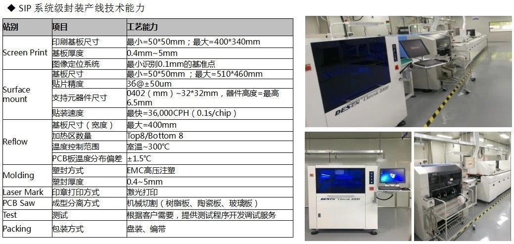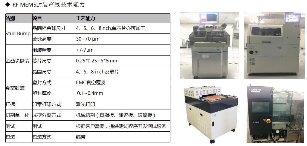 拥有BT基板封装、带腔体封装、高压塑封、陶瓷封装、3D微组装、金倒装互联等封装技术。