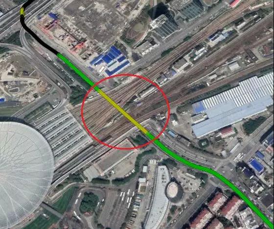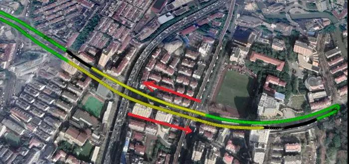 如图所示,在高架下,车辆比较多,有段非常拥堵,车辆进行起步、加速、减速、静止等各种驾驶行为,获得较好定位效果。