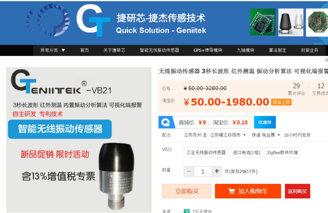 搜索店铺苏州捷研芯或者搜索“无线振动传感器”