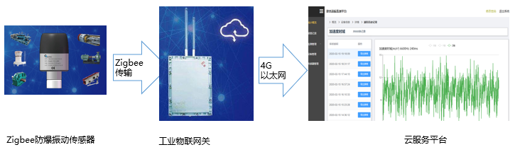 •整体打通从传感器数据采集、传输、云端存储、云服务平台,支持振动烈度分析判断和大数据建模,根据数据分析设备运行情况。