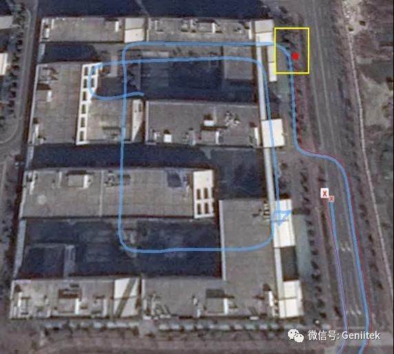 当车辆驶从黄色方框入地下停车库,红色的GPS导航数据丢失无法工作,但是蓝色的MG10持续的输出车辆实际行驶轨迹,MG10让特种车辆根本无法躲藏隐蔽。